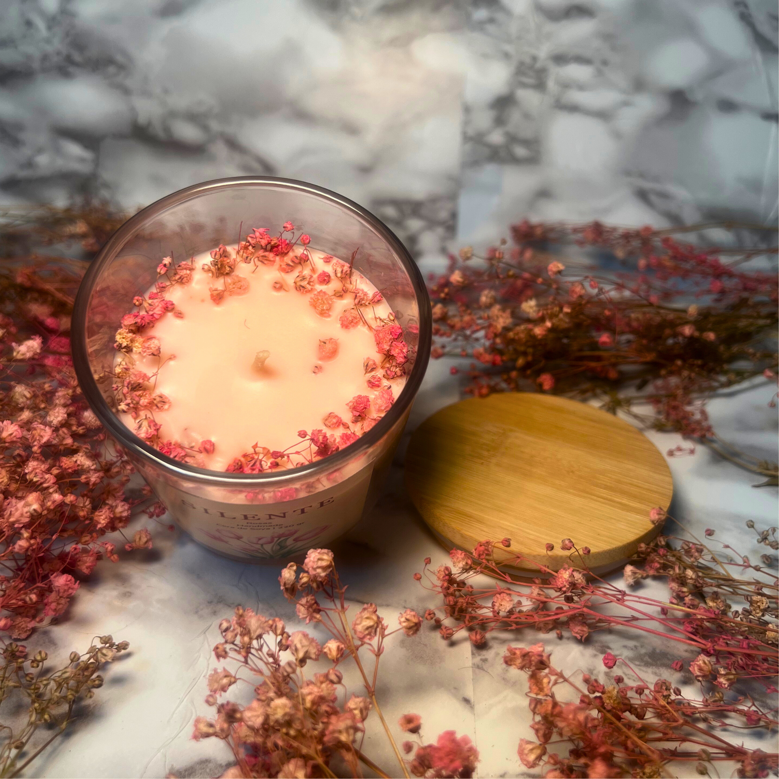 Delicada y romántica, la vela de rosas de Silente llena el ambiente con un aroma floral que evoca serenidad y elegancia. Su fragancia fresca y envolvente invita a conectar con la calma y la belleza de los pequeños momentos.