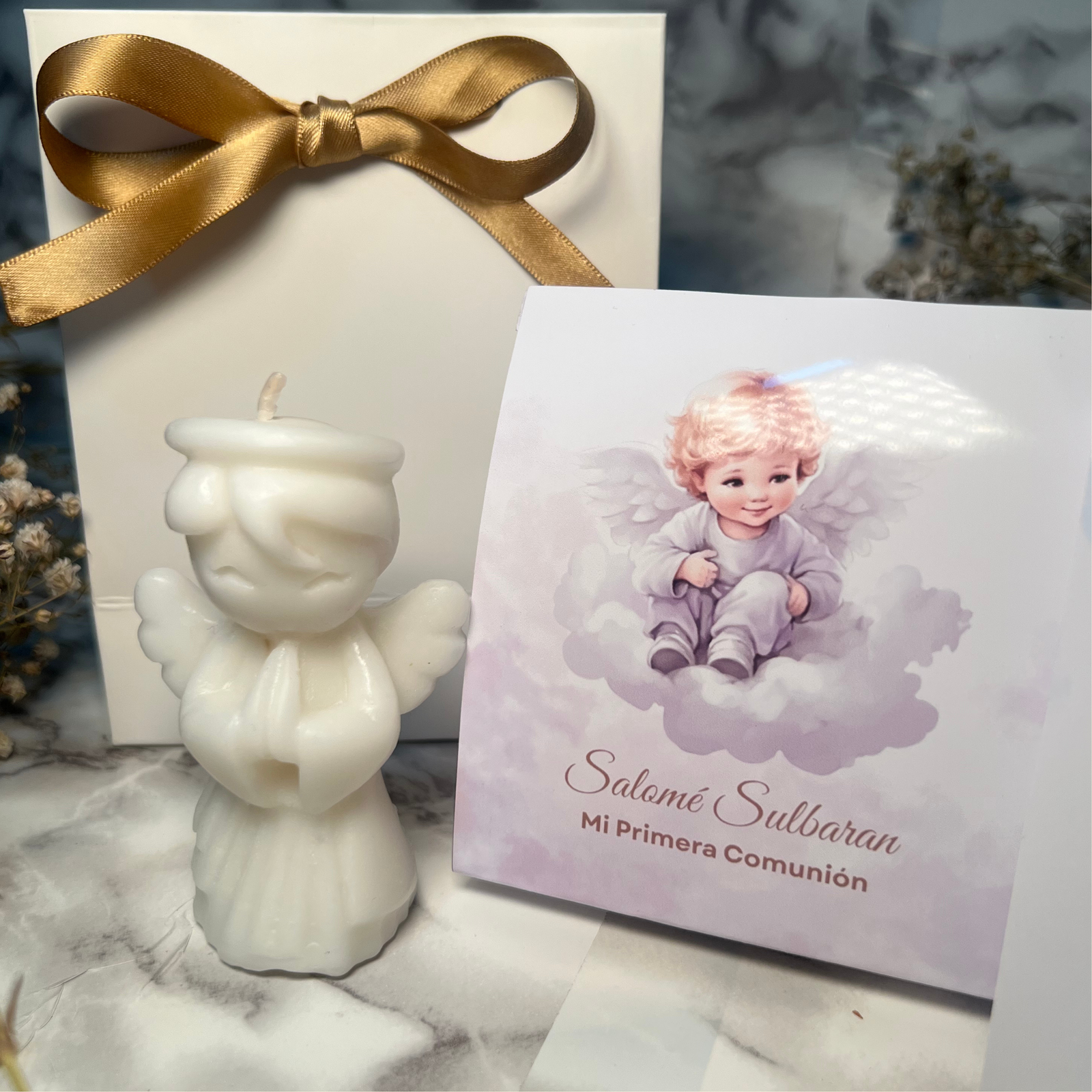 Nuestra vela de Primera Comunión combina el delicado aroma a vainilla con una hermosa figura de ángel, símbolo de pureza y protección. Diseñada para acompañar momentos especiales, es el detalle perfecto para celebrar este día único.